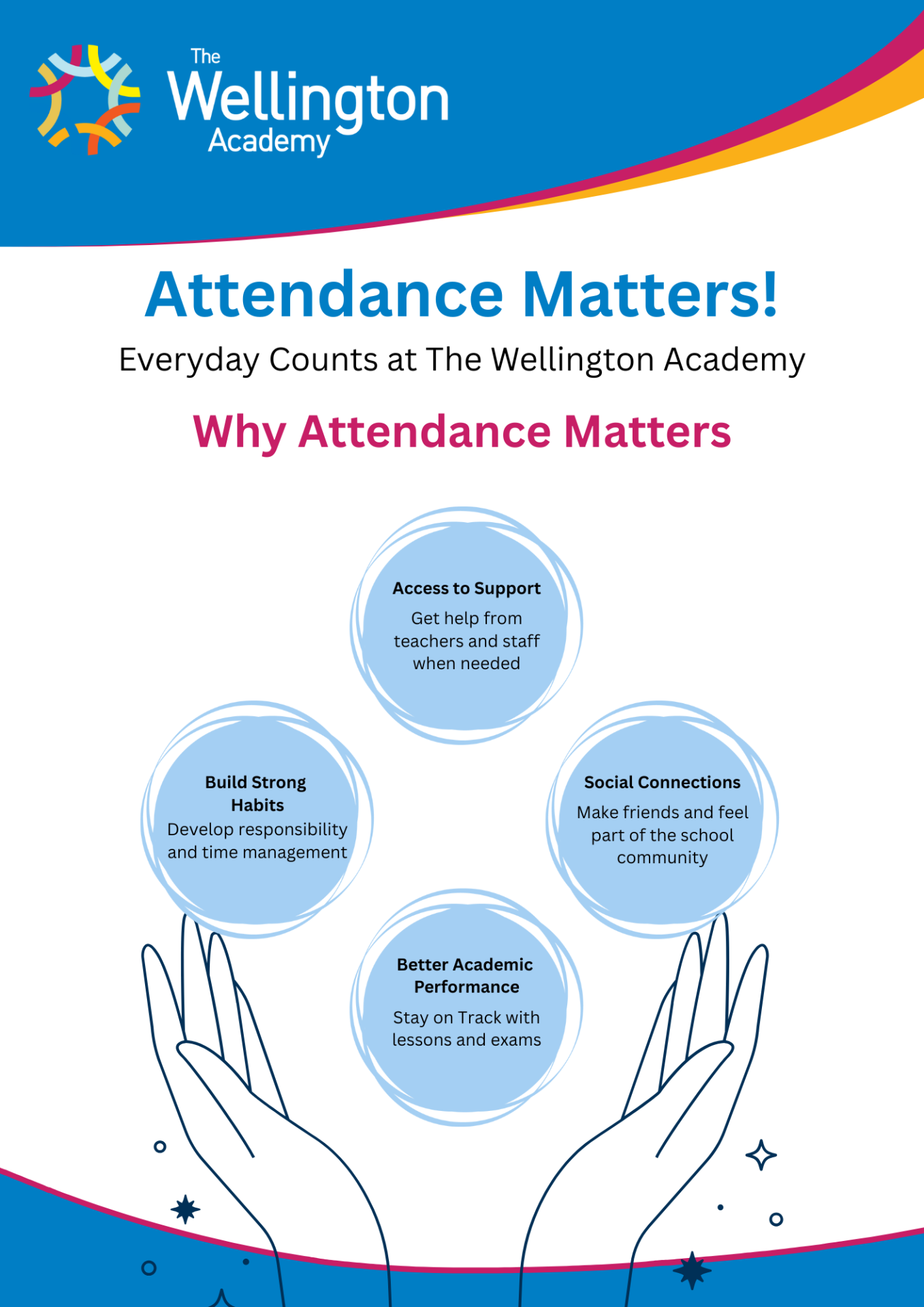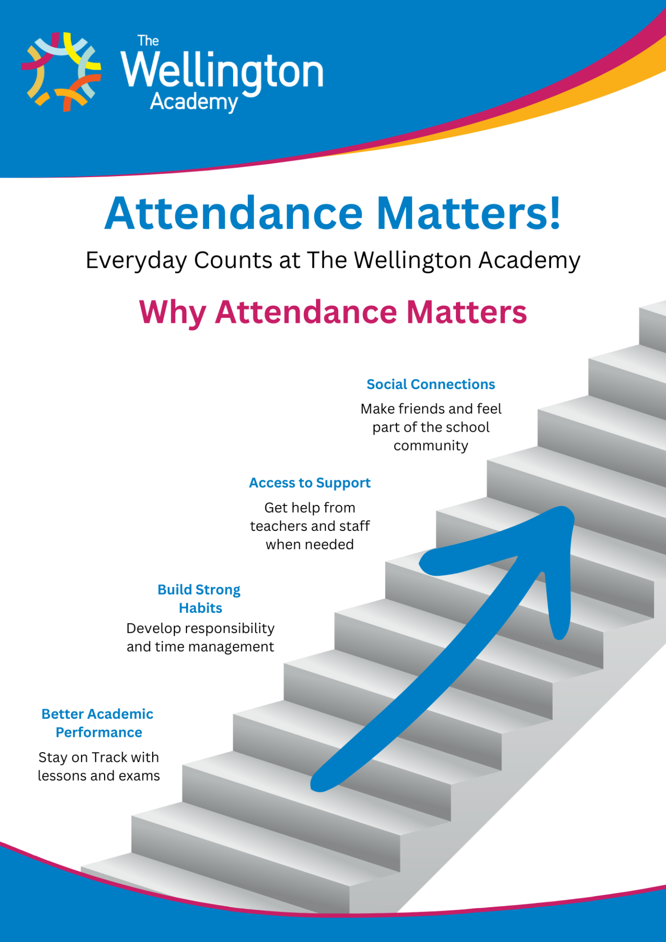 At The Wellington Academy, we believe that every day in school counts. Regular attendance is vital, not just for academic achievement, but for building strong habits, friendships, and a sense of belonging.