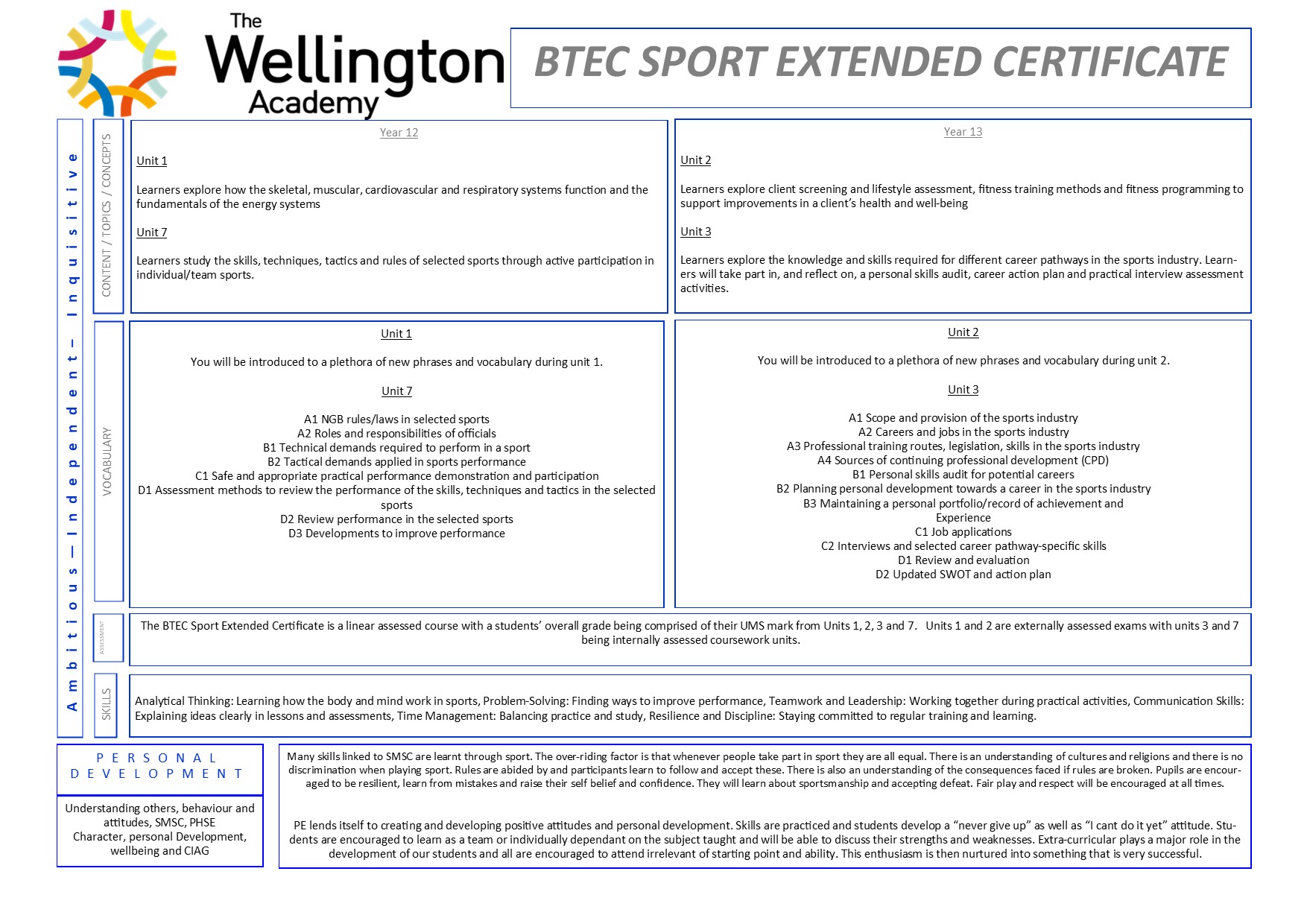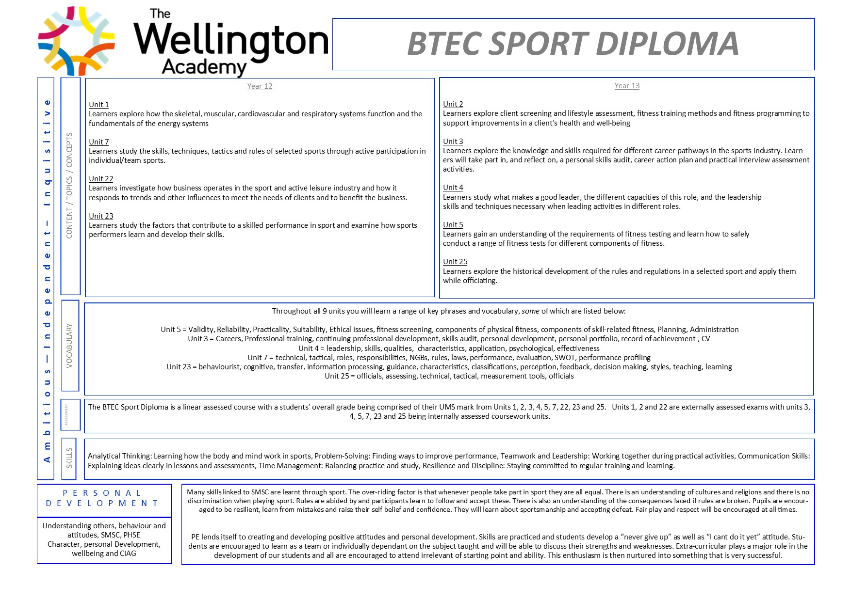 Curriculum details for PE BTEC are available via the links below, including course content, topic’s, vocabulary and skills. Please use the links to access full information.