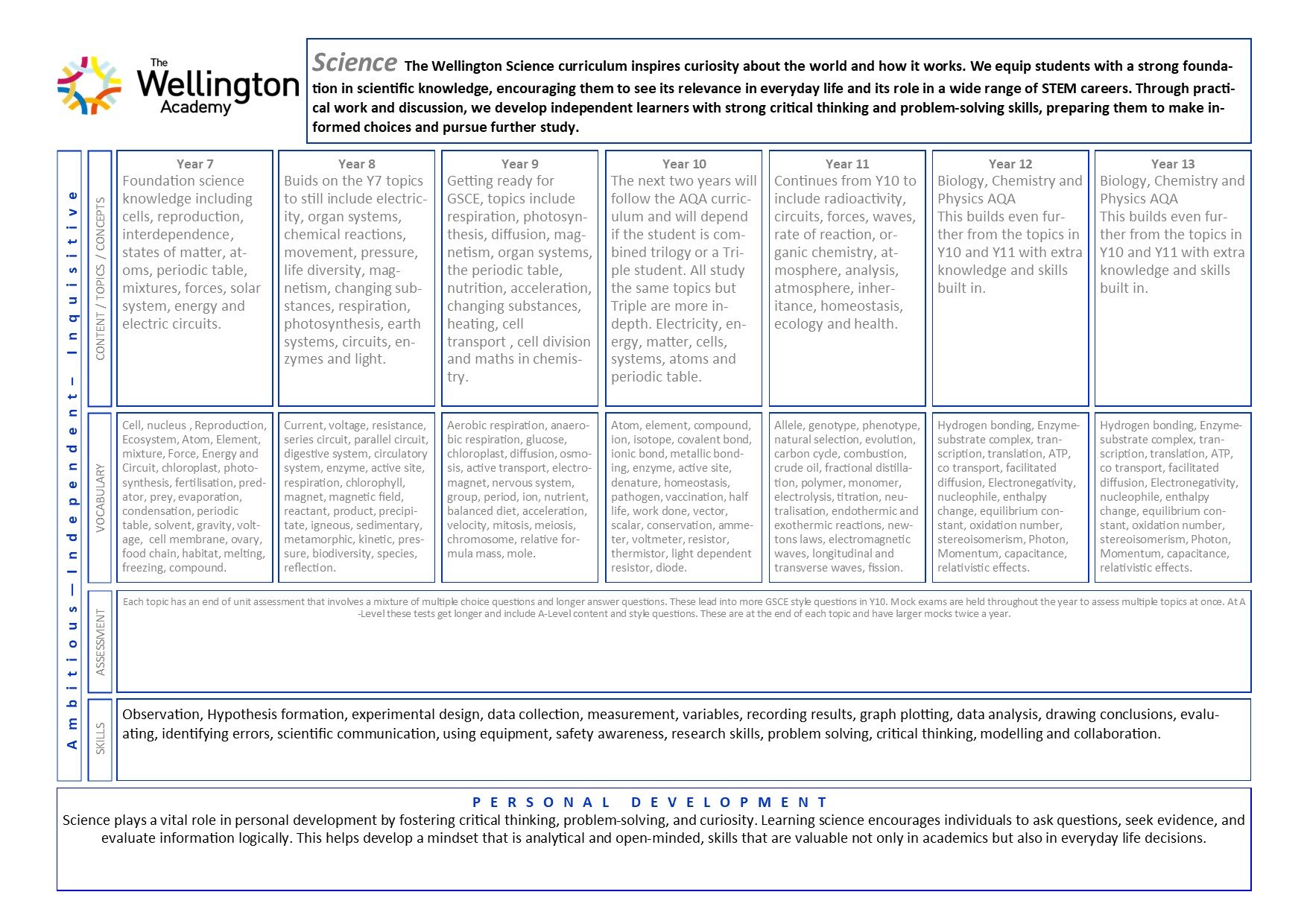 The Wellington Science curriculum inspires curiosity about the world and how it works. We equip students with a strong foundation in scientific knowledge, encouraging them to see its relevance in everyday life and its role in a wide range of STEM careers. Through practical work and discussion, we develop independent learners with strong critical thinking and problem-solving skills, preparing them to make informed choices and pursue further study.